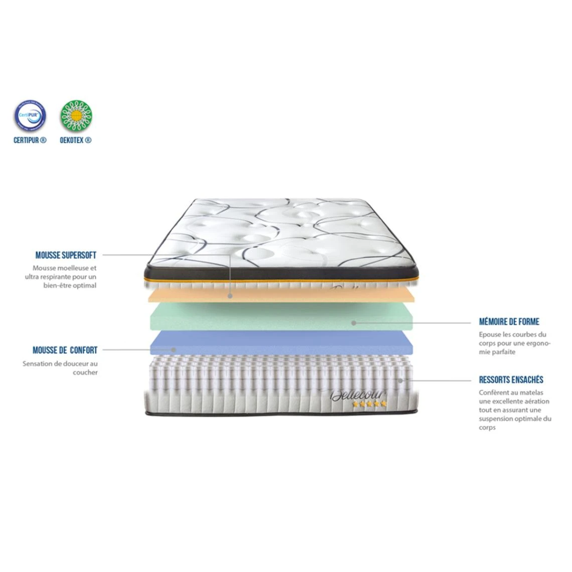 Points forts Bellecour Matelas Simple BELLECOUR 2.0 90×200
