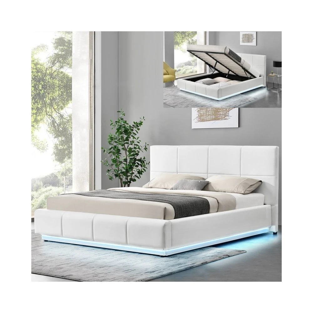 Points forts Meubler Design Lit design Alexi avec sommier et coffre de rangement – Blanc – 180×200
