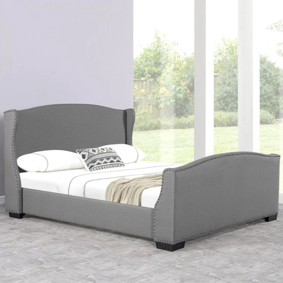 Faites paraître votre sens et votre goût raffiné du style avec le lit MASTER Imposé un style original à votre chambre à coucher principale ou à votre chambre d’ami avec ce lit design moderne. Ce lit moderne présente un capitonnage soigneusement fabriqué montrant une tête de lit cloutée et l’avant du lit. Le revêtement d’aspect lin et les tons aérés font de ce lit standard un point d’ancrage de style campagnard bord de mer dans votre chambre à coucher. Il est fabriqué avec un cadre en bois et d’ingénierie, et possède des rails latéraux et des pieds de lit discrets. Nous aimons la façon dont le cadre à profil bas vous donne un accès facile à votre matelas, ce qui vous permet de faire le lit rapidement. La tête de lit de l’abri a un dessus arqué et une garniture cloutée bordant le devant des ailes. Le revêtement en polyester de ce lit est rembourré de mousse pour un coussin supplémentaire derrière votre tête. Ce lit moderne est livré avec un sommier à lattes. Vous n’aurez donc plus besoin d’un sommier supplémentaire pour vous installer et profiter de votre lit capitonné. Le sommier du lit contemporain est résistant et vous pourrez y mettre le matelas de votre choix pour votre confort personnalisé. Votre bien-être et votre confort durable Après la réception et le montage de votre lit design vous pourrez profiter du confort qu’il vous donne très rapidement. Ce lit design se repose sur quatre pieds solides et résistants, d’une hauteur parfaite pour être sûre de vous apporter une longue durée d’utilisation. Ce lit design est durable et vous permet de profiter d’un bien être et une aisance pendant de nombreuses années tout en gardant le style de votre chambre moderne et contemporaine dans un goût exceptionnel déclarant votre sens du style. Compléter votre chambre à coucher avec des tables de chevet design se mariant avec le lit ou avec des lampes ou encore une commode idéale pour vos rangements. Plus d’informations sur votre site www.meublerdesign.com DIMENSIONS Longueur (cm) Lit 140:206cm Lit 160/180:216cm Largeur (cm) Lit 140:156cm Lit 160:176cm Lit 180 196cm Hauteur tête de lit (cm) 115.5cm Hauteur contour de lit 31cm DESCRIPTIF DU PRODUIT Sommier Oui 24 lattes Assemblage Requis Oui Matelas Non fournis Matière Tissu Entretien facile nettoyer avec un chiffon humidifié