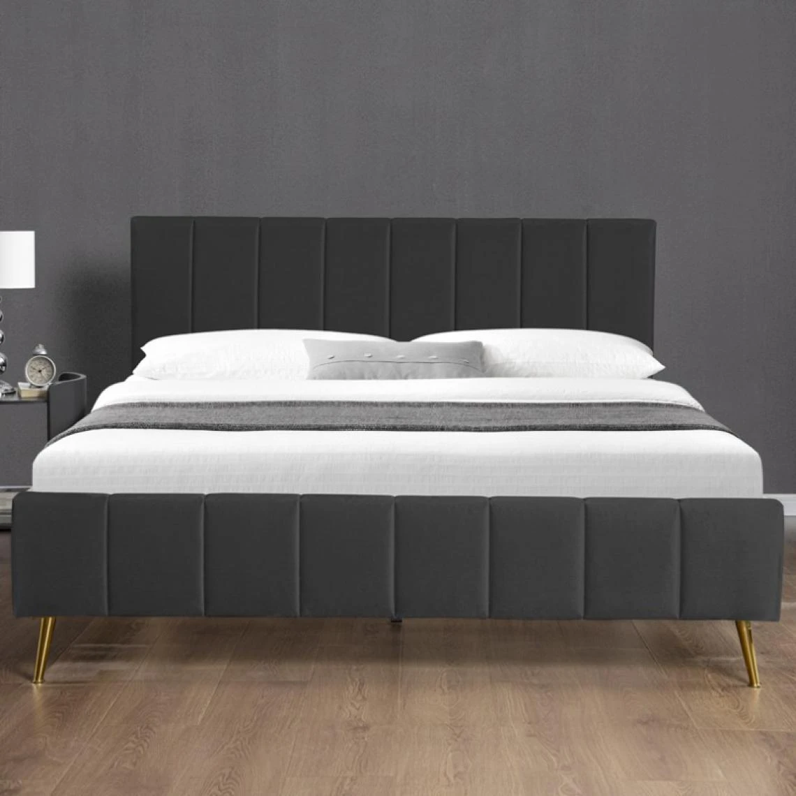 Points forts Meubler Design Lit Design Sommier Velours Pied Or Auster – Velours Noir – 160×200