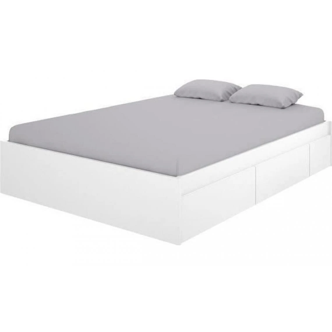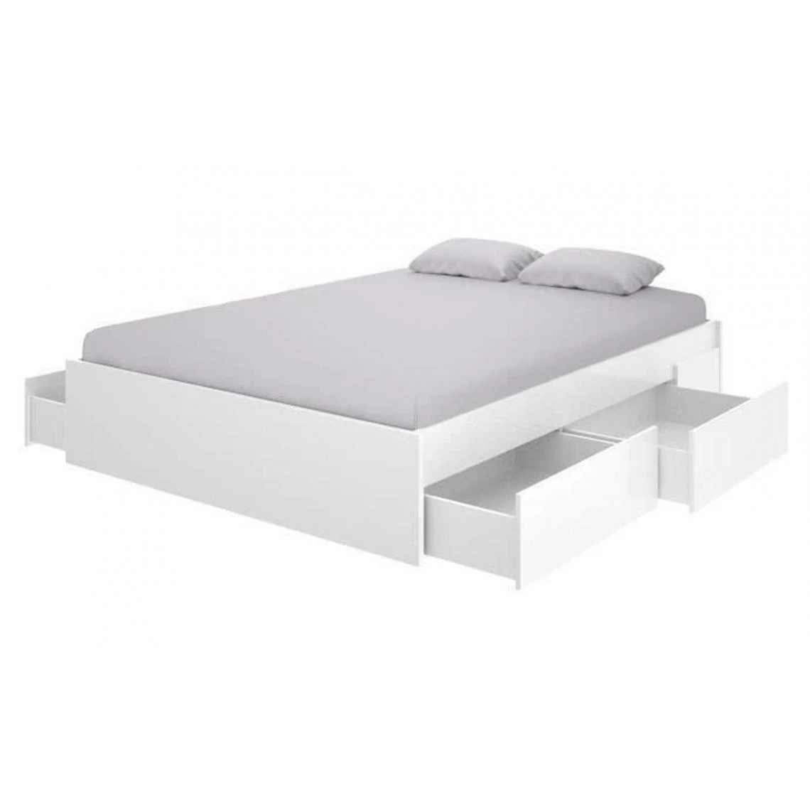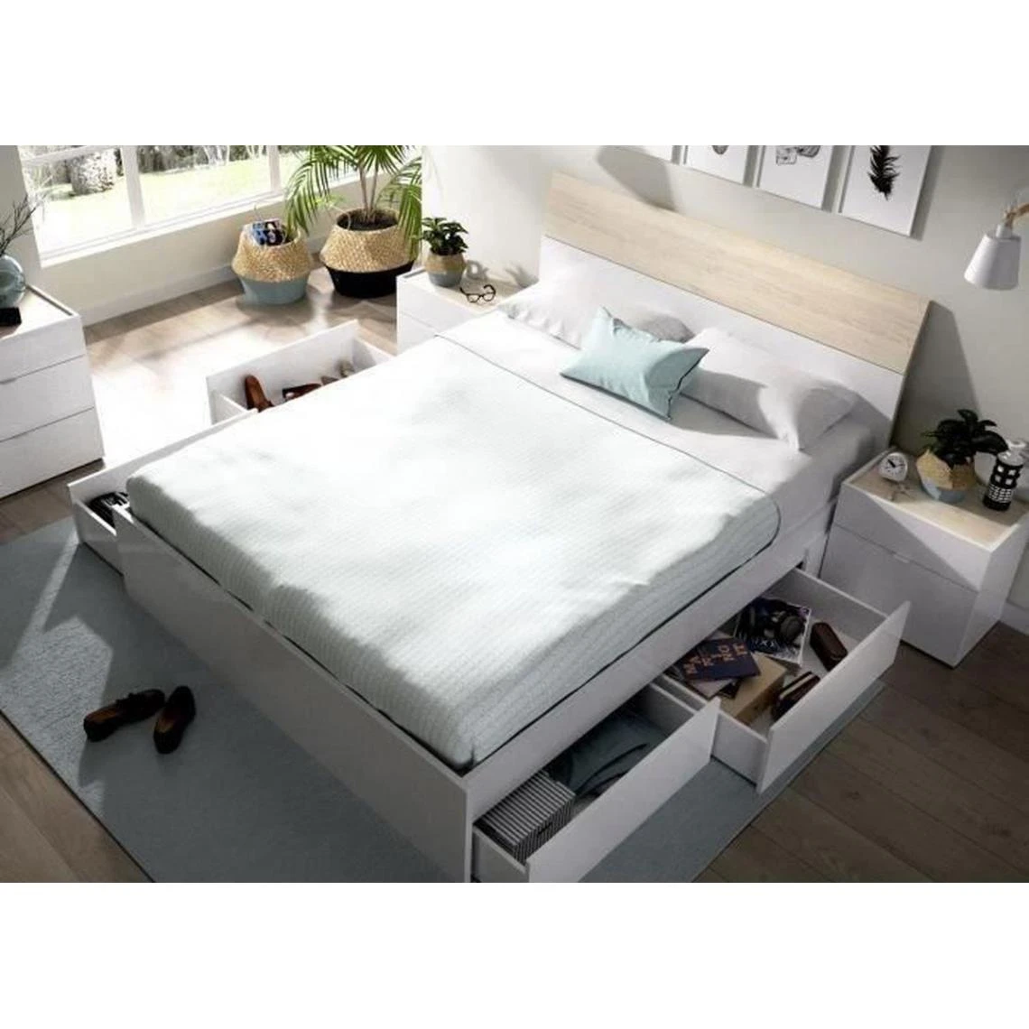 Lit adulte 140 x 190 cm avec 4 tiroirs de rangement en panneau de particule mélaminé coloris blanc