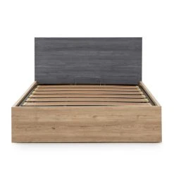 Points forts Pegane Lit adulte avec coffre en mélamine et métal coloris chêne / noir – Longueur 198 x Profondeur 148,2 x Hauteur 95,5 cm