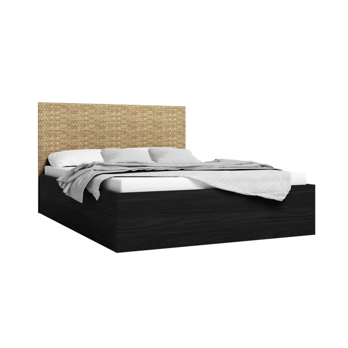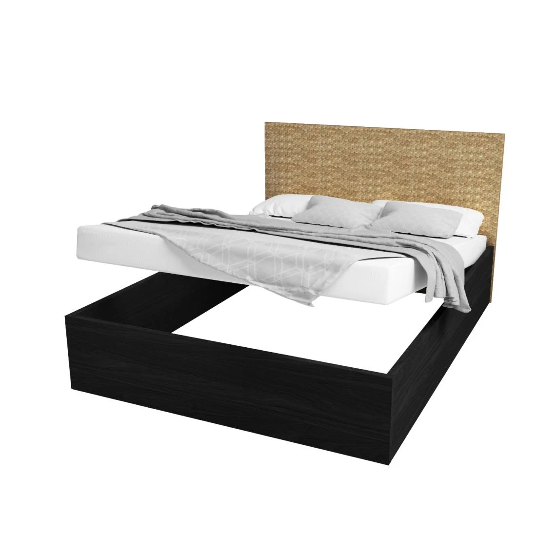 Lit avec coffre de rangement fabriqué en mélamine et métal coloris naturel et noir. Livré avec sommier. Matelas non inclus.