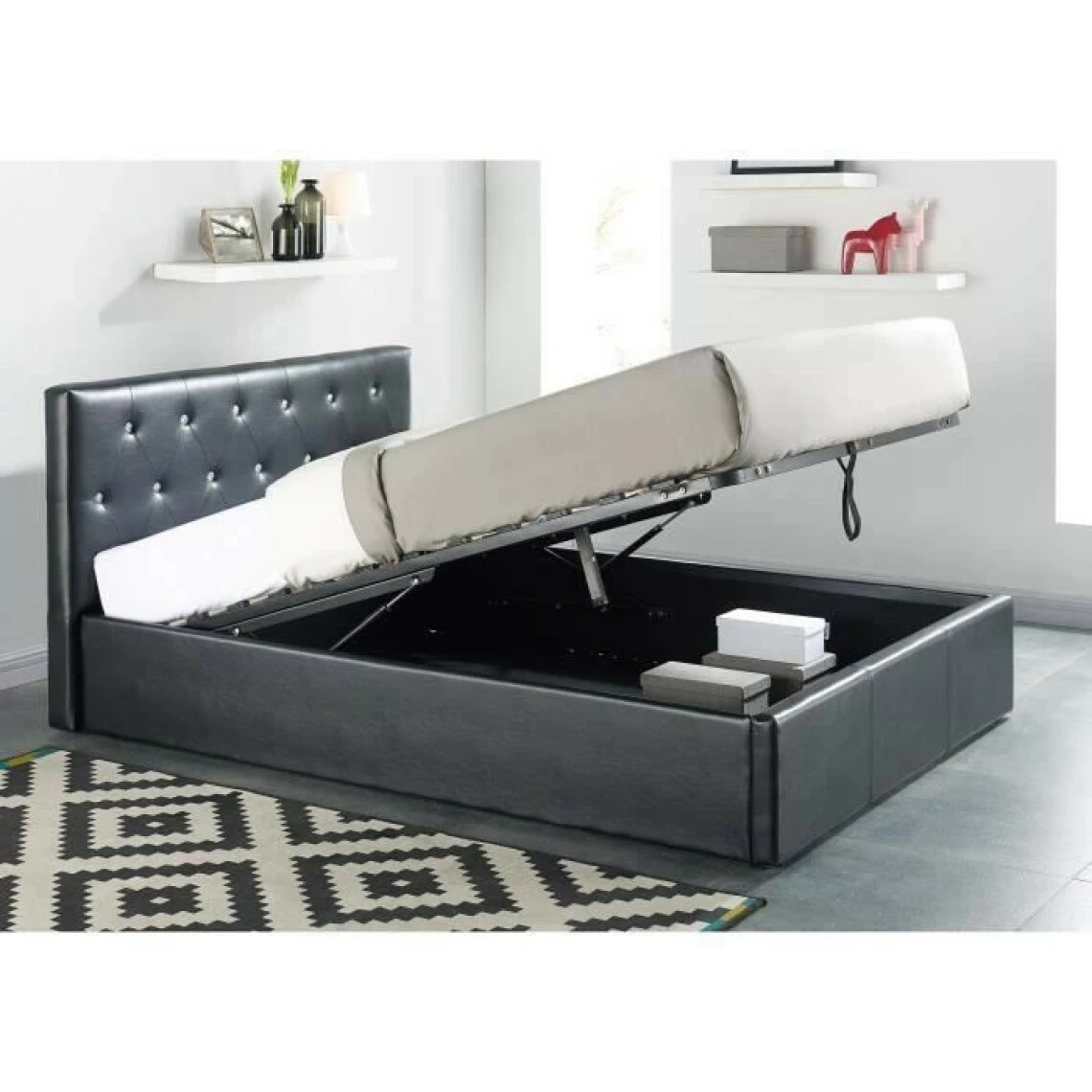 Points forts Sans Marque BAHIA Lit coffre adulte contemporain simili noir + sommier – l 140 x L 190 cm