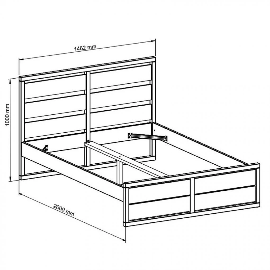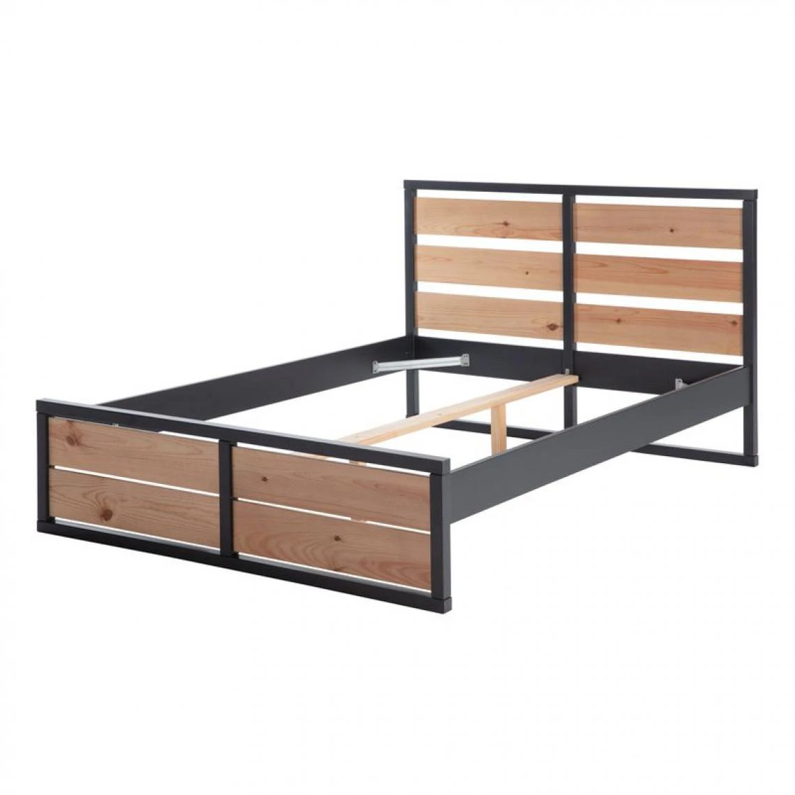 Teinte :anthracite et pin massif. . Finition :mat et imitation chêne. . Garantie :2 ans, pièces. . Structure :en panneaux de fibres de moyenne densité en gris anthracite laqué. . Traverses :4 équerres en acier dans les angles. . Couchage en cm :140×190 cm (sans matelas, sans sommier). . A monter soi-même. . Vendu sans matelas. . Vendu sans sommier. . Dimensions en cm : l. 146,8 – H. 100 – L. 200 cm. . Tête et pied de lit :planche en pin massif couleur imitation chêne. . Dispo pcs détachées donnée fournisseur :NC. .