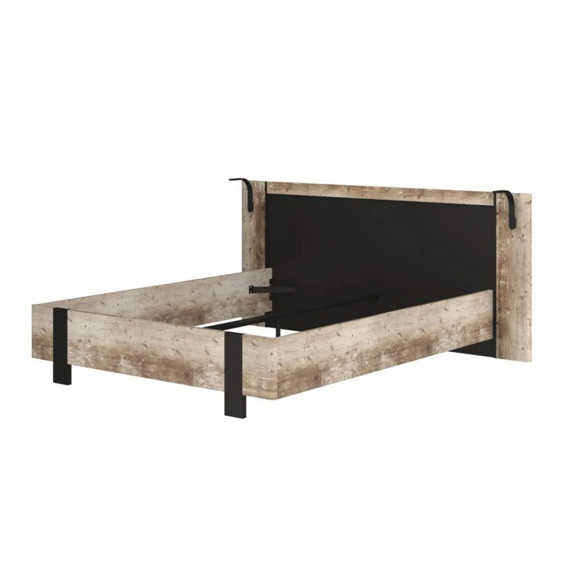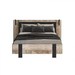 Existe en 160×200 cm.. Style industriel.. 2 lampes LED fixé à droite et à gauche de la tête de lit et port USB.. Matelas et sommier vendus séparément..