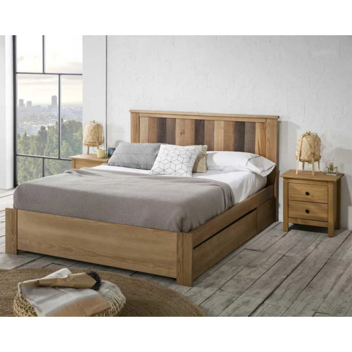 Parfait pour une chambre déco tendance mobilier Industriel, cottage ou même Bord de mer, ce bois de lit complet avec tiroir en sous-face vous accompagnera durablement.