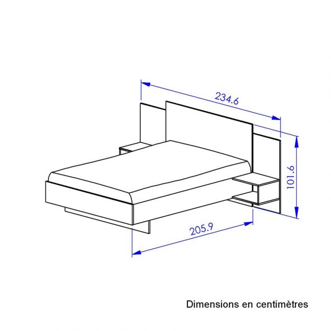 Intégrant 2 tables de nuit suspendues à la tête de lit, ce bois de lit complet propose un design sobre et élégant qui lui permettra de faire forte impression dans une pièce à la place souvent comptée.