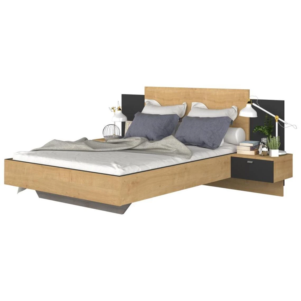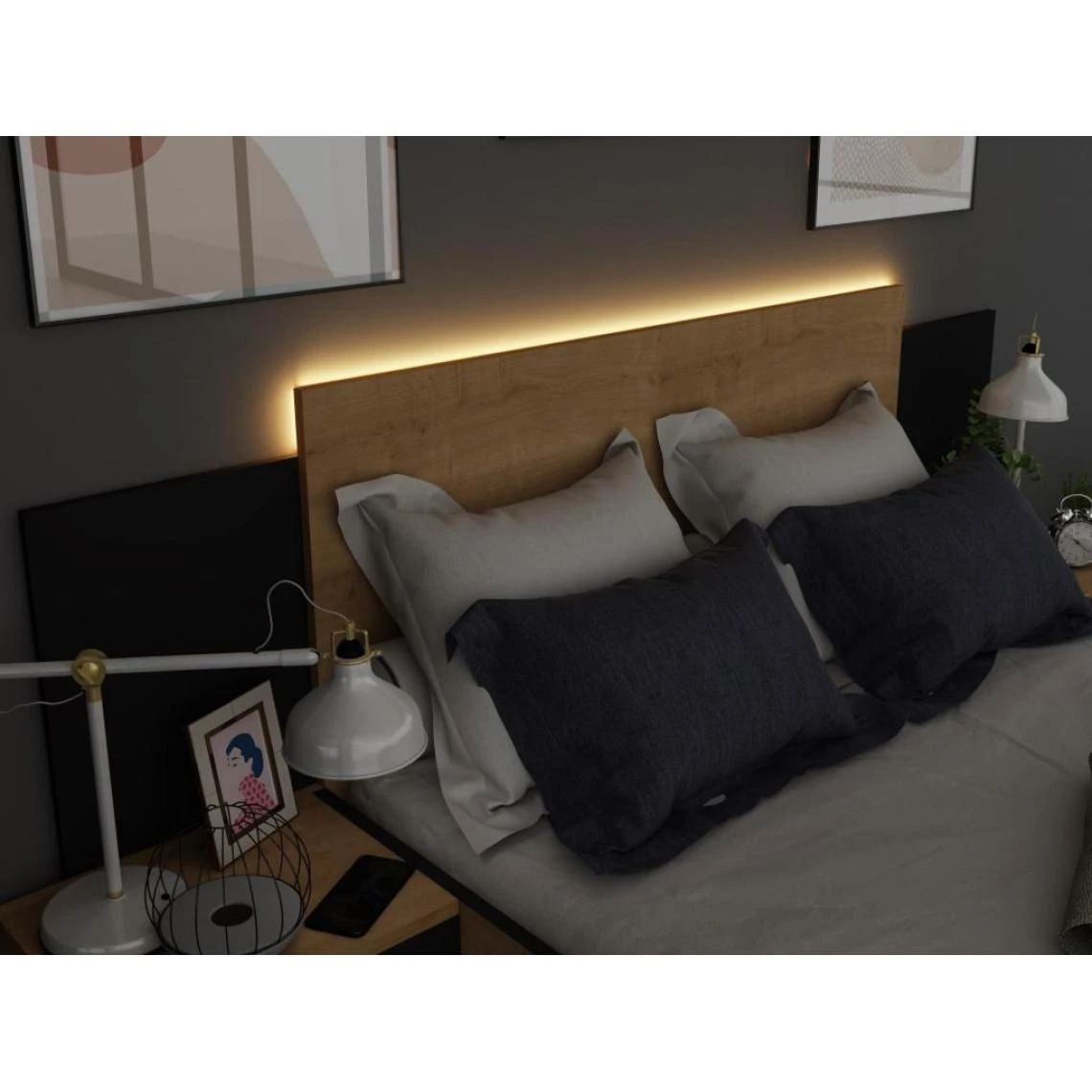 Points forts Vente-Unique Lit avec chevets 140 x 190 cm – 2 tiroirs – Avec LEDs – Coloris : Naturel et noir – SULOF