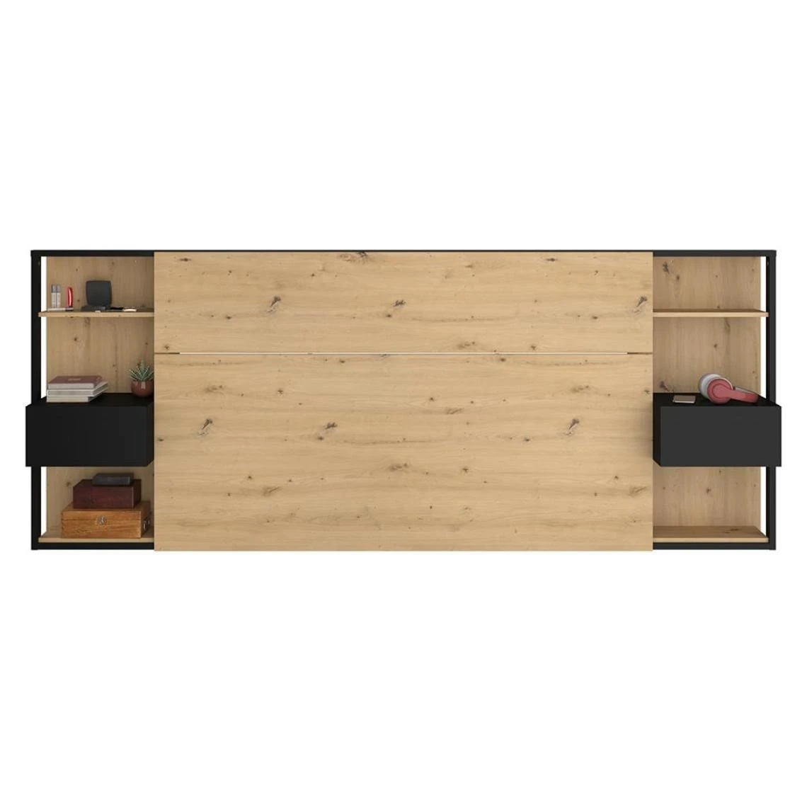 Points forts Vente-Unique Lit avec chevets et rangements 160 x 200 cm – Coloris : Naturel et noir – MISTA