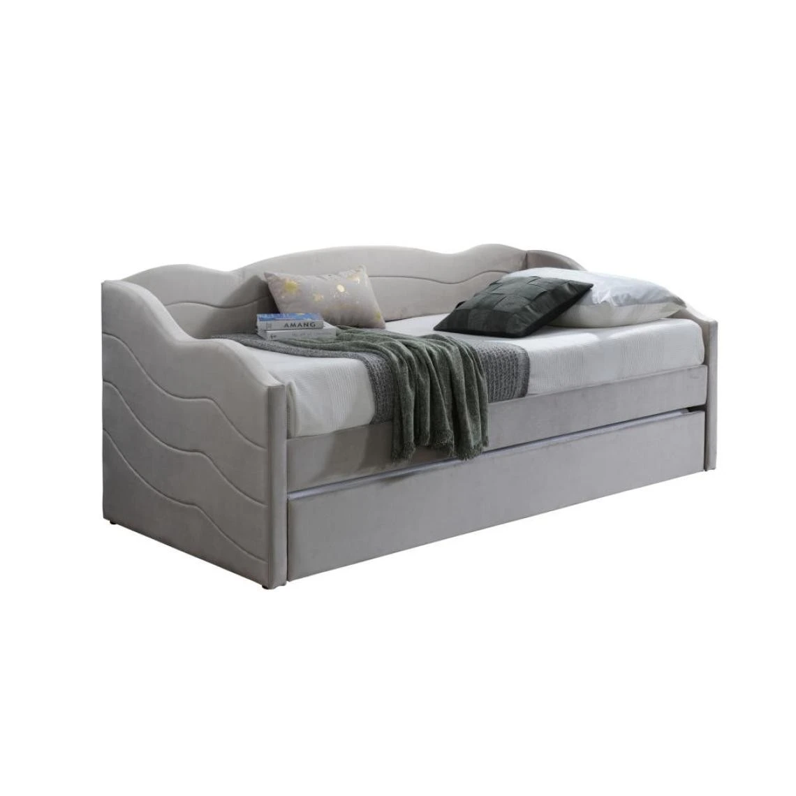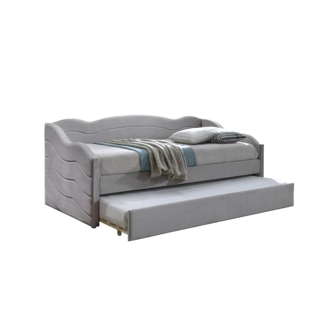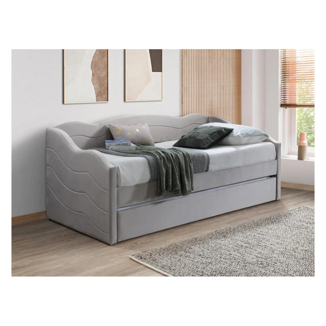 Avec ses courbes arrondies et minimalistes, le lit banquette gigogne LENVIA sera le mix parfait entre style et fonctionnalitĂ©. En tissu gris, il s’intĂ©grera facilement au sein de tous les styles d’intĂ©rieur et formera un espace nuit Ă©purĂ© et propice Ă la dĂ©tente.