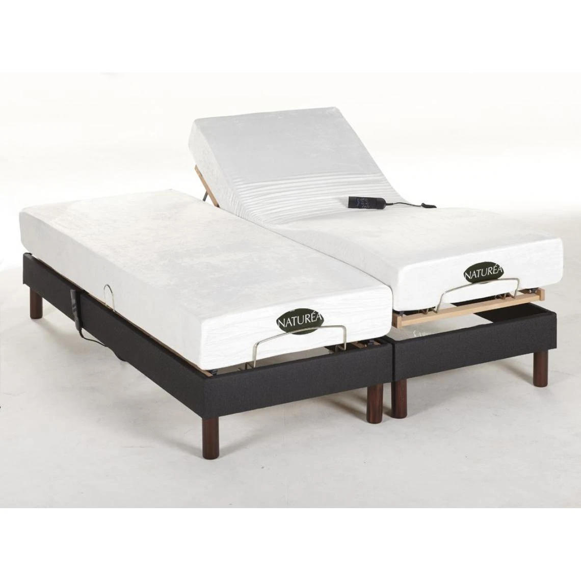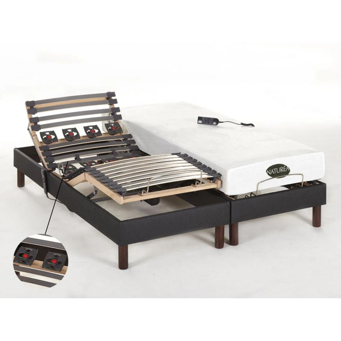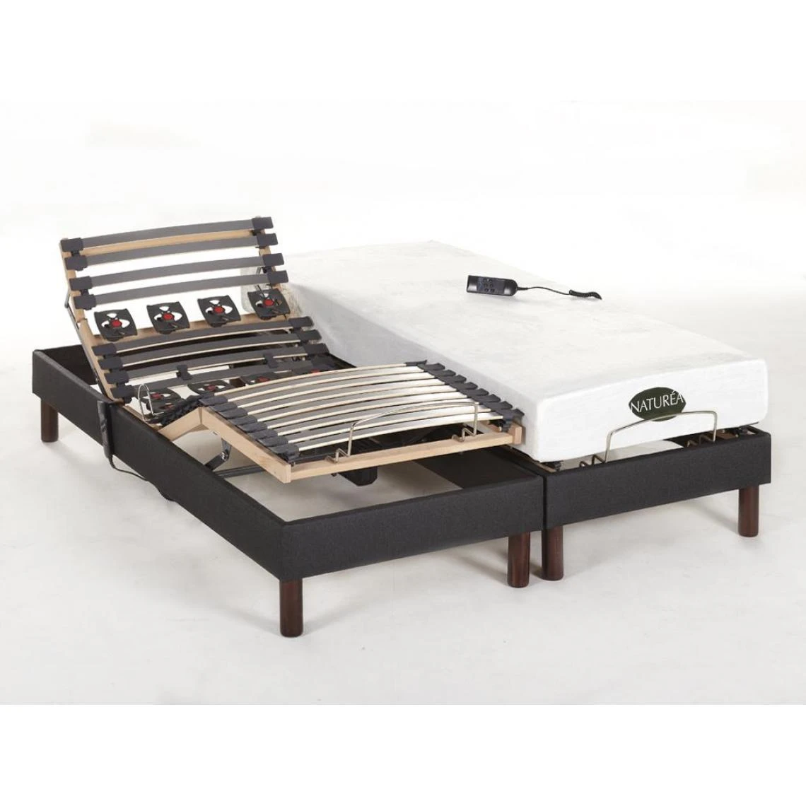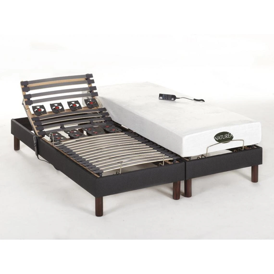 Points forts Vente-Unique Lit électrique relaxation lattes et plots matelas mémoire forme tissu anthracite THESEE de NATUREA – 2 x 80 x 200 cm
