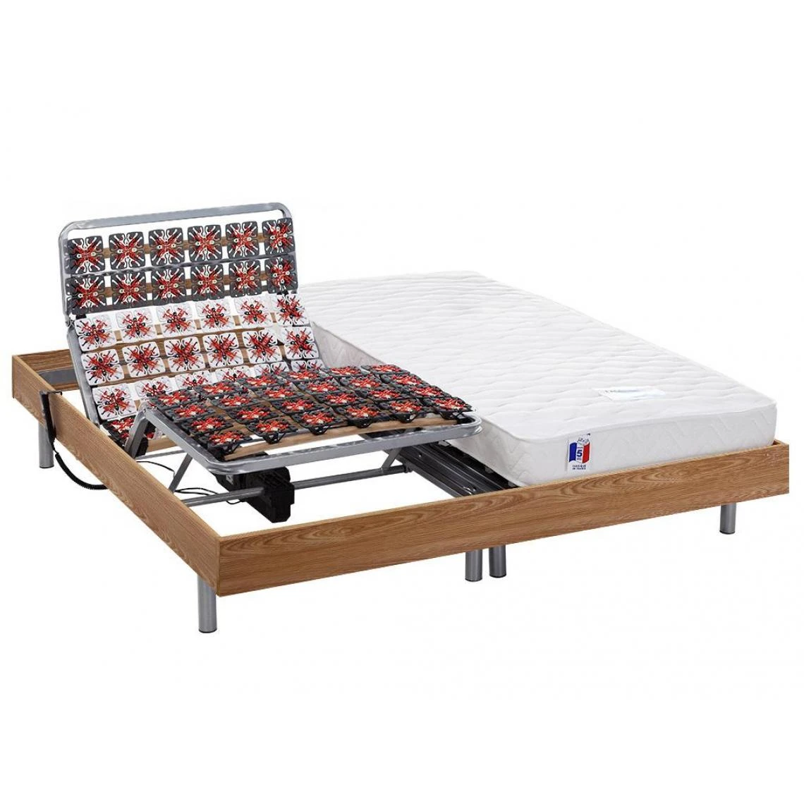 Points forts Vente-Unique Lit électrique relaxation tout plots matelas 100% latex HOMERE III de DREAMEA – moteurs OKIN – chêne naturel – 2 x 90 x 200 cm