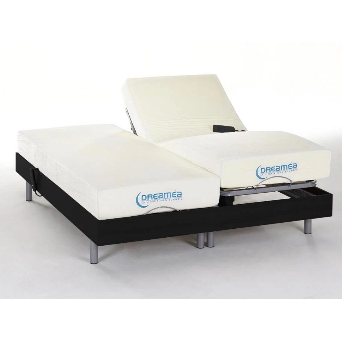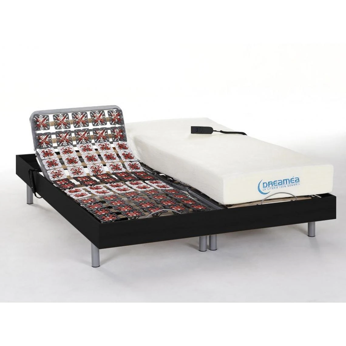 Points forts Vente-Unique Lit électrique relaxation tout plots matelas mémoire de forme HESIODE III de DREAMEA – moteurs OKIN – noir – 2 x 80 x 200 cm