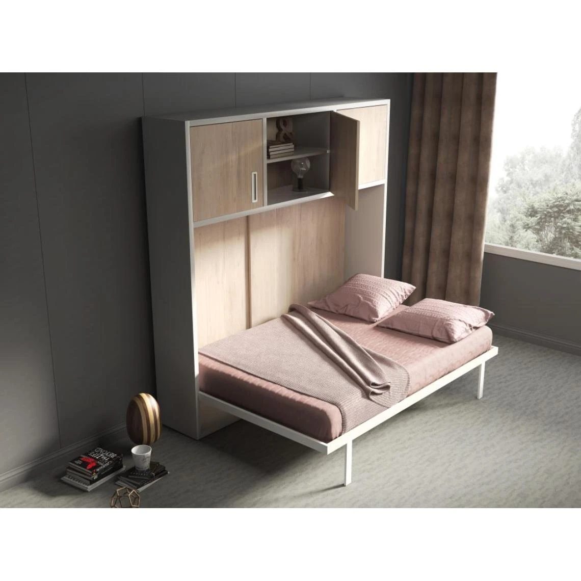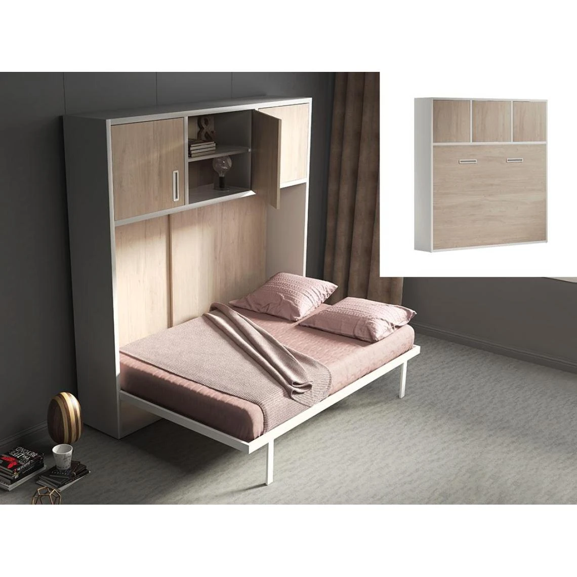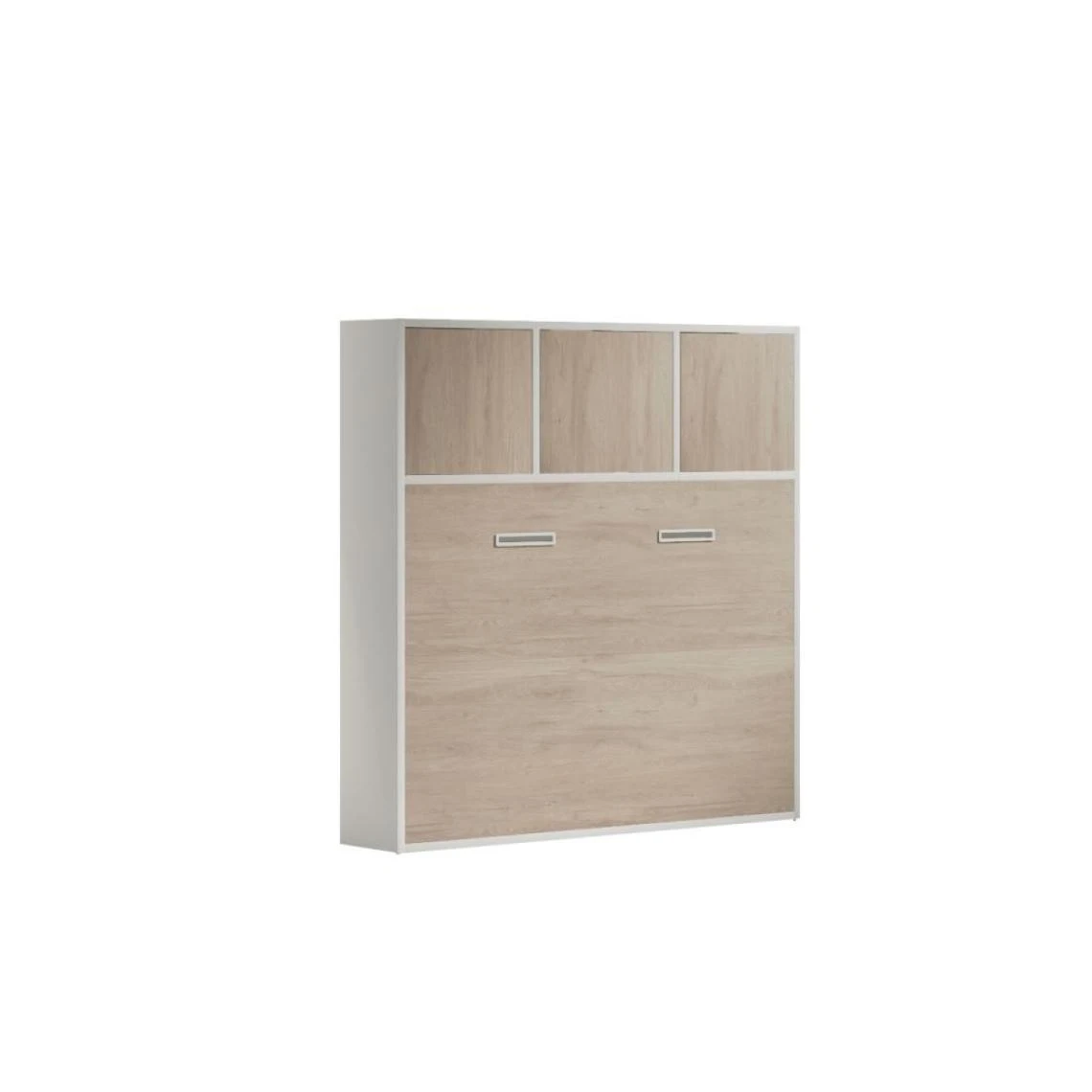 En position fermée, ce lit escamotable prend la forme d’une armoire. Ouvert, vous découvrez alors un véritable couchage 140 x 200 cm prévu pour un usage régulier et qui vous apportera tout le confort d’un vrai lit. Equipé de 3 placards au dessus du lit, vous aurez la possibilité de ranger quelques affaires pour un gain de place assuré !