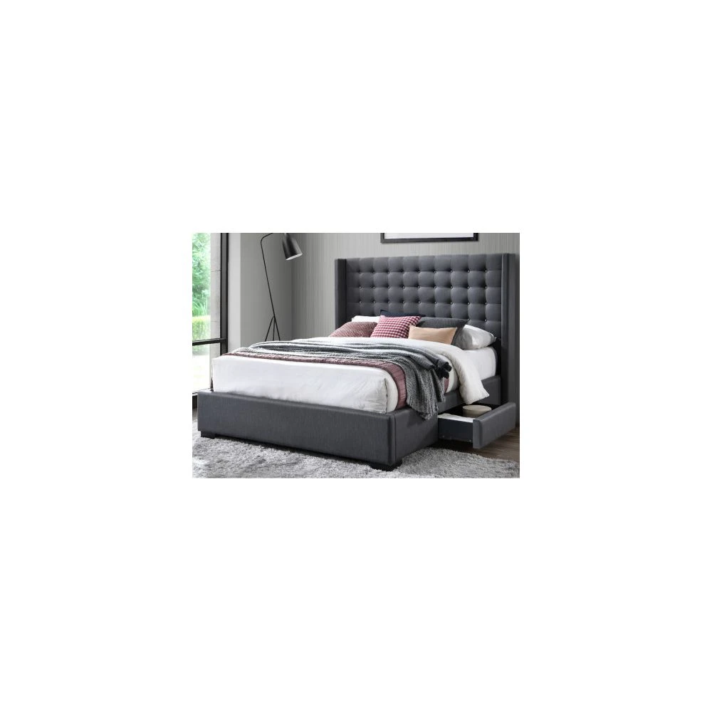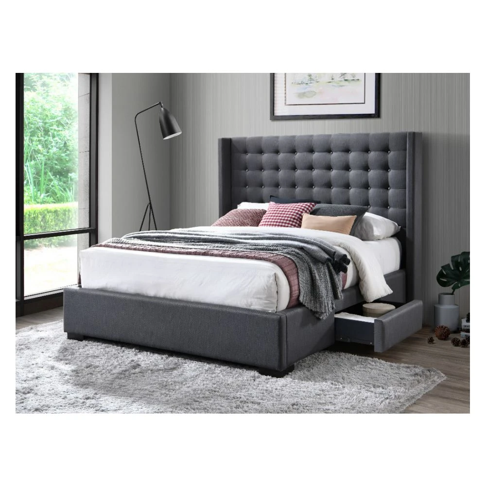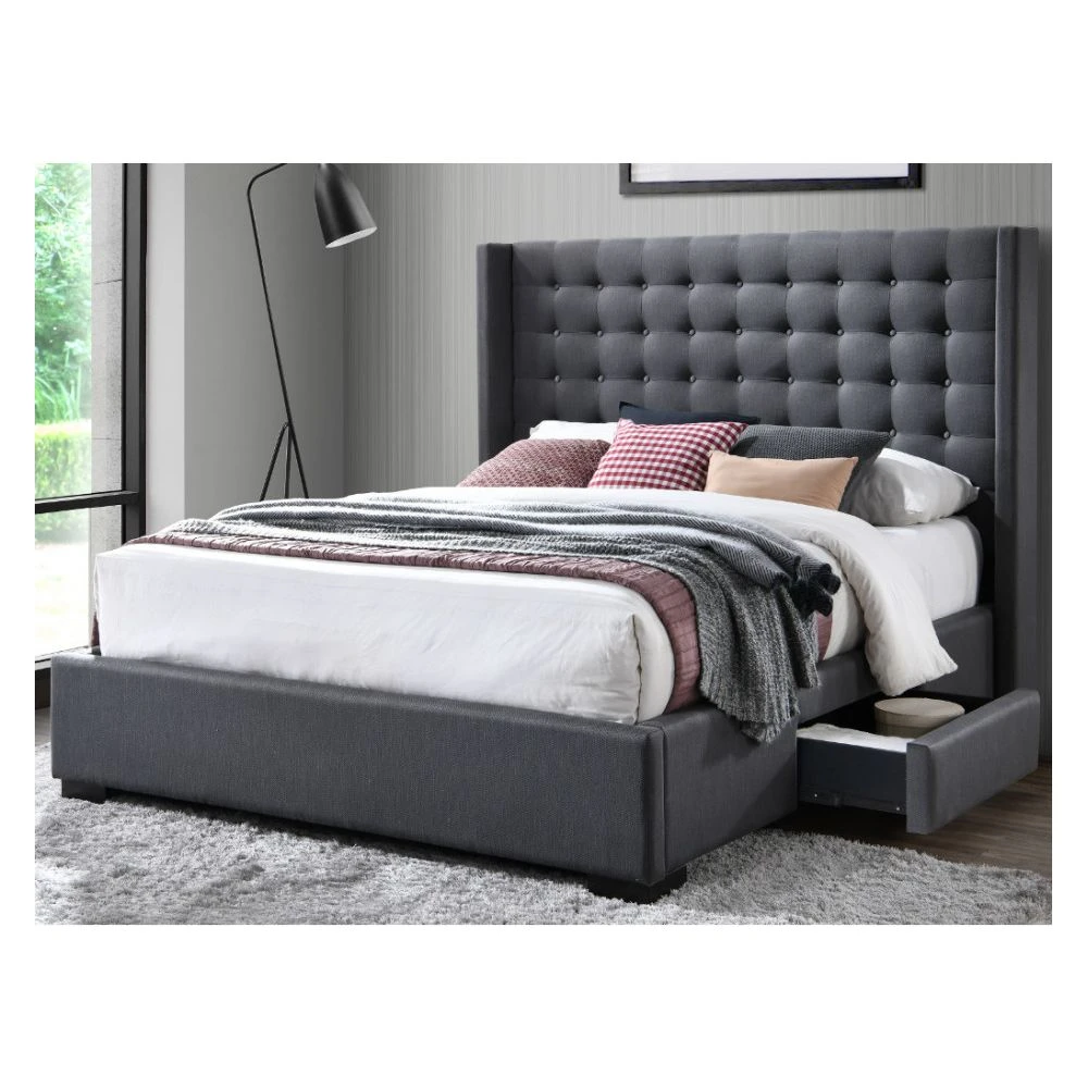 Points forts Vente-Unique Lit LEONCE tête de lit capitonnée – Avec tiroirs – 160x200cm – Tissu Gris