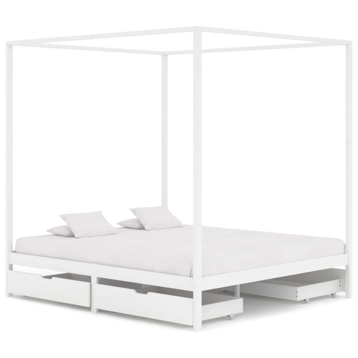 Points forts Vidaxl vidaXL Cadre de lit à baldaquin avec 4 tiroirs Blanc Pin 160×200 cm