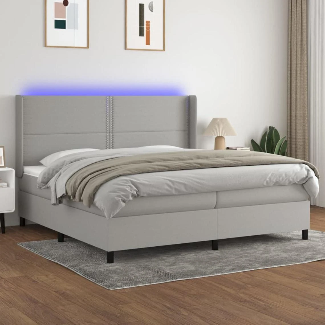 Points forts Vidaxl vidaXL Sommier tapissier matelas et LED Gris clair 200×200 cm Tissu