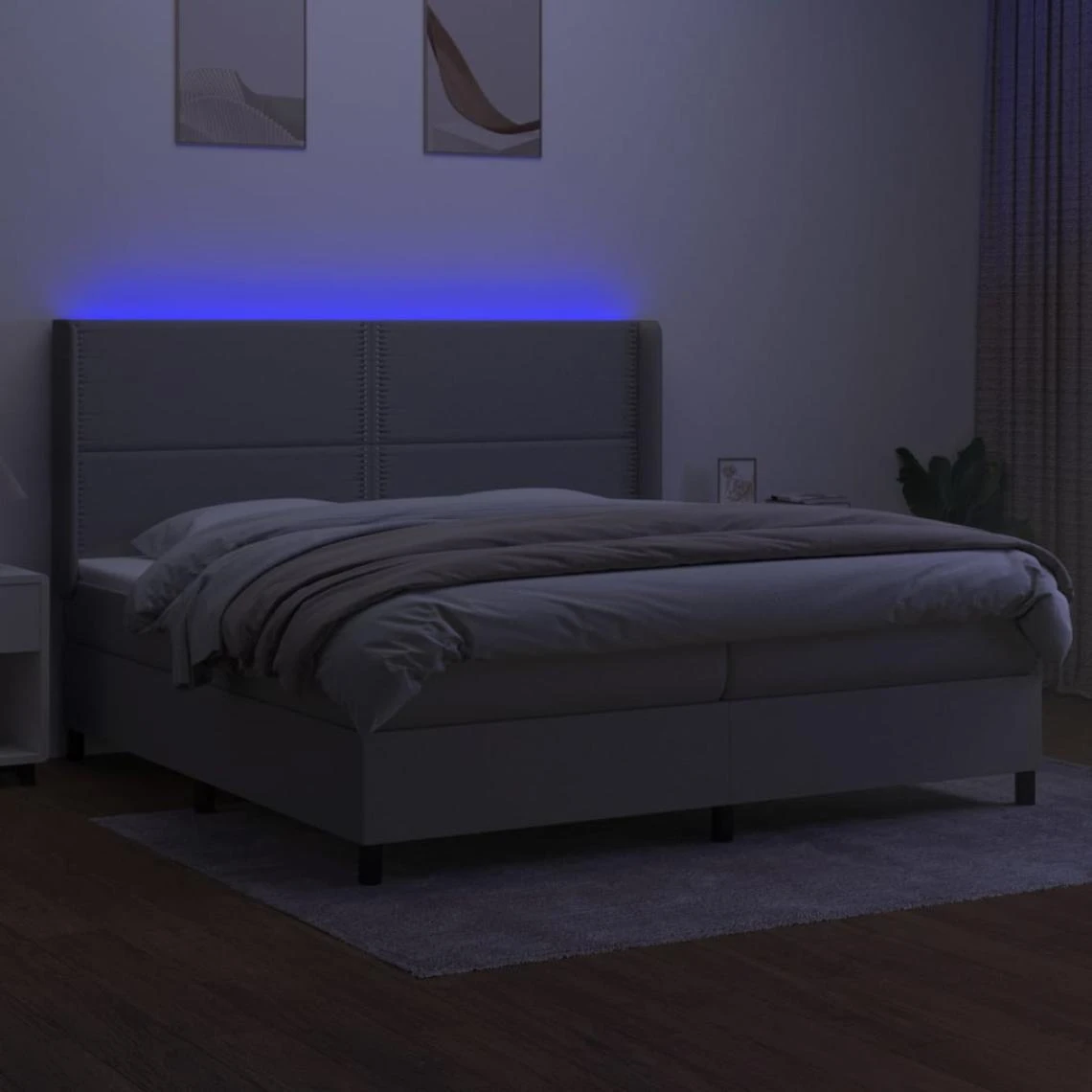 Utilisez ce sommier tapissier avec matelas et LED pour profiter d’un sommeil réparateur ! C’est le point central de votre chambre à coucher. Tissu durable : le tissu présente un aspect simple et épuré, et il est respirant et durable.Tête de lit pratique : la tête de lit est réglable en hauteur selon vos préférences. La tête de lit vous offre un excellent soutien du dos lorsque vous êtes assis dans votre lit pour lire ou regarder la télévision.Bande LED colorée : apportez de l’éclairage dans l’obscurité avec des lumières LED colorées !Matelas à ressorts ensachés : le ressort ensaché individuel intégré est connu pour sa très haute qualité tout en assurant un haut niveau de durabilité et d’adaptabilité. Il peut absorber efficacement le bruit et les chocs causés par les sauts et les rotations.Protège-matelas doux pour la peau : le protège-matelas est recouvert d’un tissu résistant et doux pour la peau, ce qui le rend souple et confortable. Remarque :Pour des raisons d’hygiène, le matelas ne peut pas être retourné si l’emballage est retiré ou ouvert.Seule la partie avec un symbole de ciseaux peut être coupée et seule la partie avec l’USB continuera à fonctionner comme avant.Chaque produit est livré avec un manuel de montage dans la boîte pour un montage facile.